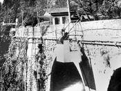 + Dos treballadors de Martí Geis treballant al pont de Sant Joan de les Abadesses.