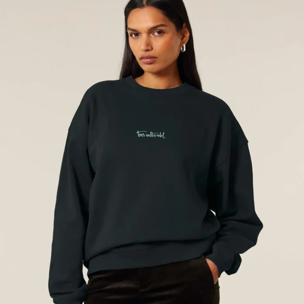 Dessuadora “oversize” negra sense caputxa.