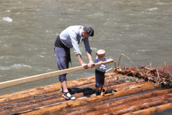 Cultura ACN 02.07.2023 La Pobla de Segur viu amb il·lusió i nervis la primera baixada dels raiers com a patrimoni de la humanitat La 45a Diada de Raiers atrau un gran nombre de públic al punt d'arribada, al Pont de Claverol