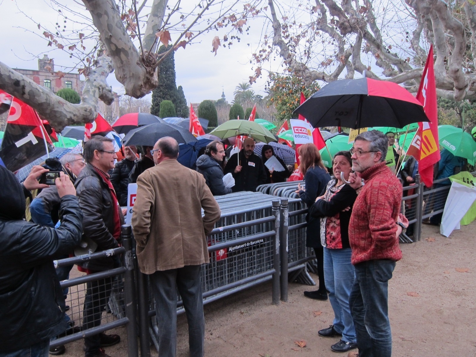 Més d'una cinquantena de delegats sindicals i professors s'han concentrat aquest dimarts davant del Parlament per reclamar un calendari per negociar "el retorn de les condicions laborals perdudes des del 2010", coincidint amb l'inici del debat de Pressupostos.