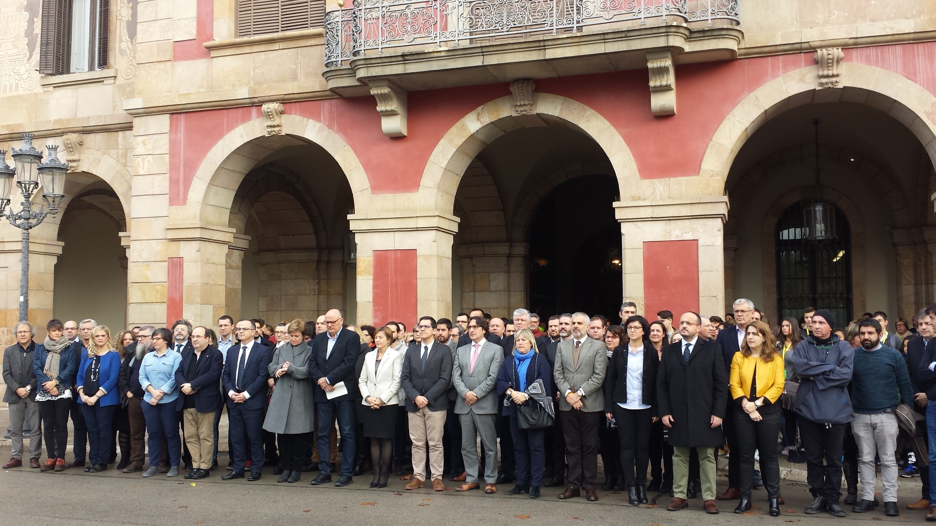 Diputats i treballadors del Parlament han guardat aquest dimarts un minut de silenci a l'exterior de la Cambra com a mostra de dol per les víctimes de l'atemptat d'aquest dilluns a Berlín.