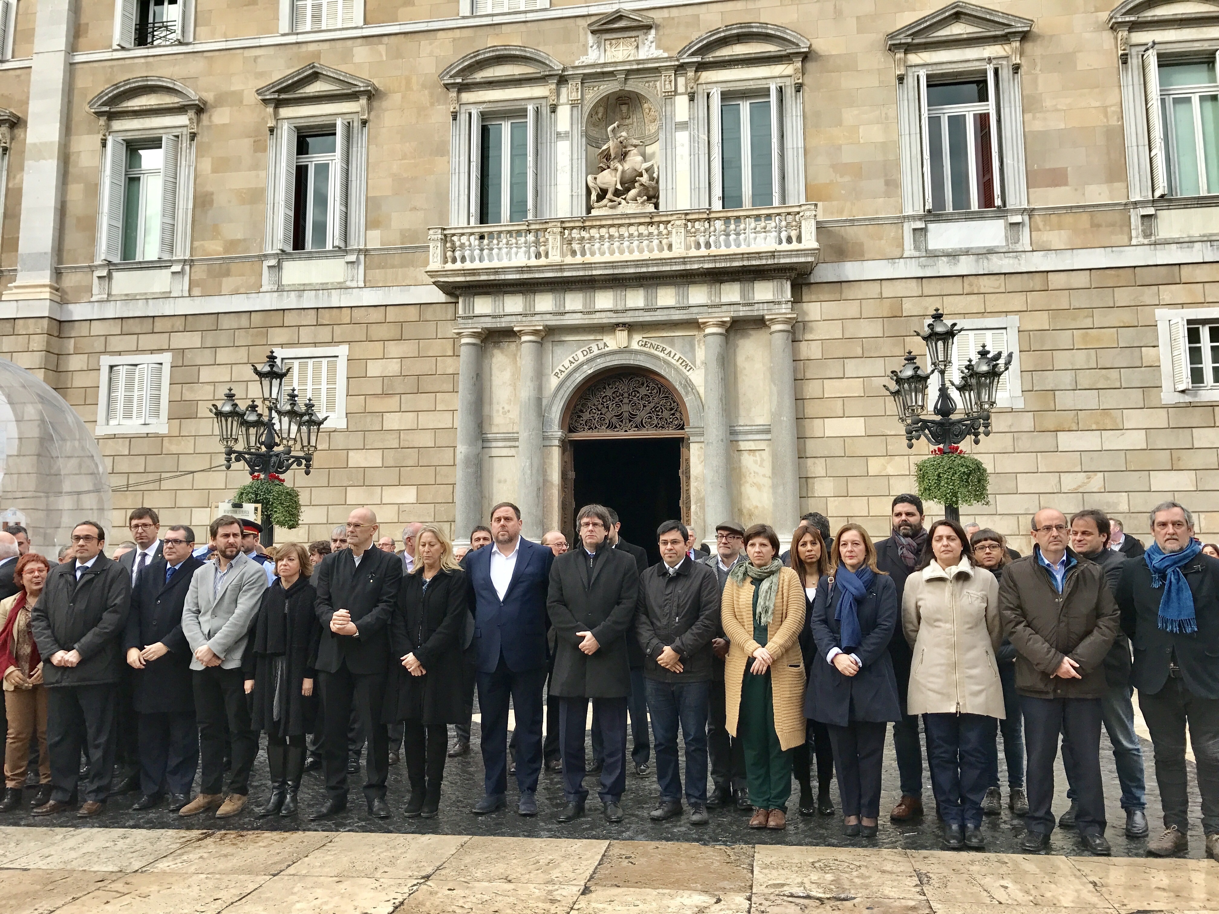 El president de la Generalitat, Carles Puigdemont, ha encapçalat aquest dimarts un minut de silenci institucional a la plaça de Sant Jaume de Barcelona per condemnar l'atemptat a un mercat nadalenc de Berlín i donar suport a les víctimes i els seus familiars.