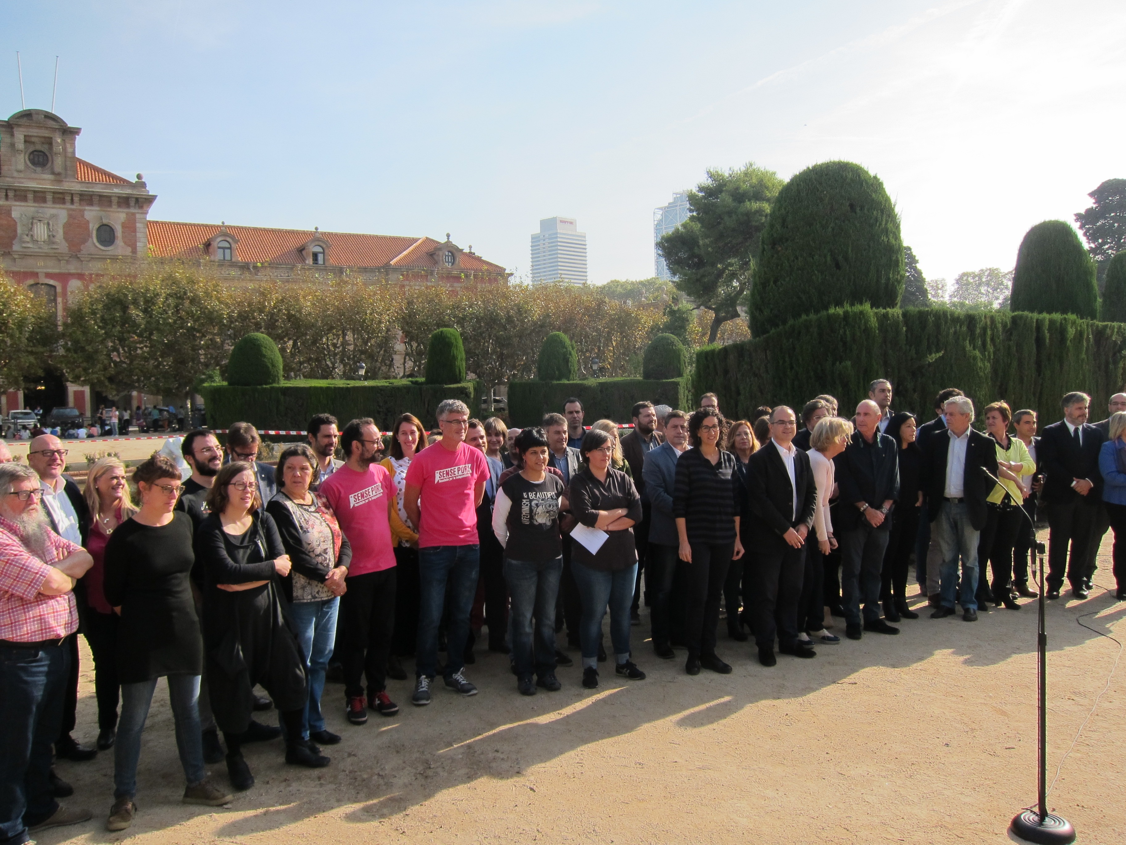 Boya (CUP) incideix en la desobediència i Rovira (JxSí) opta per la fórmula "continuar treballant" BARCELONA, 18 ([EUROAP] PRESS) Diputats de JxSí i la CUP s'han reunit aquest dimarts davant el Parlament per rebutjar la judicialització que consideren que existeix per part del Govern espanyol per via del Tribunal Constitucional (TC) del procés independentista i han advertit que, malgrat això, continuaran desenvolupant el full de ruta pactat: "No us tenim por".