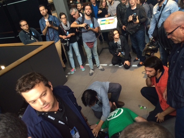Un grup d'una vintena de membres de les joventuts d'ERC (Jerc) han intentat irrompre en la inauguració de l'exposició 'Franco, Victòria, República. Impunitat i espai urbà' al Born Centre de Cultura i Memòria de Barcelona.