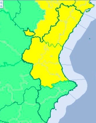 Les províncies de València i Castelló estan en alerta groga, risc, per pluges i tempestes que poden ser localment fortes i acumular més de 20 litres per metre quadrat en una hora, segons la predicció d'Aemet.