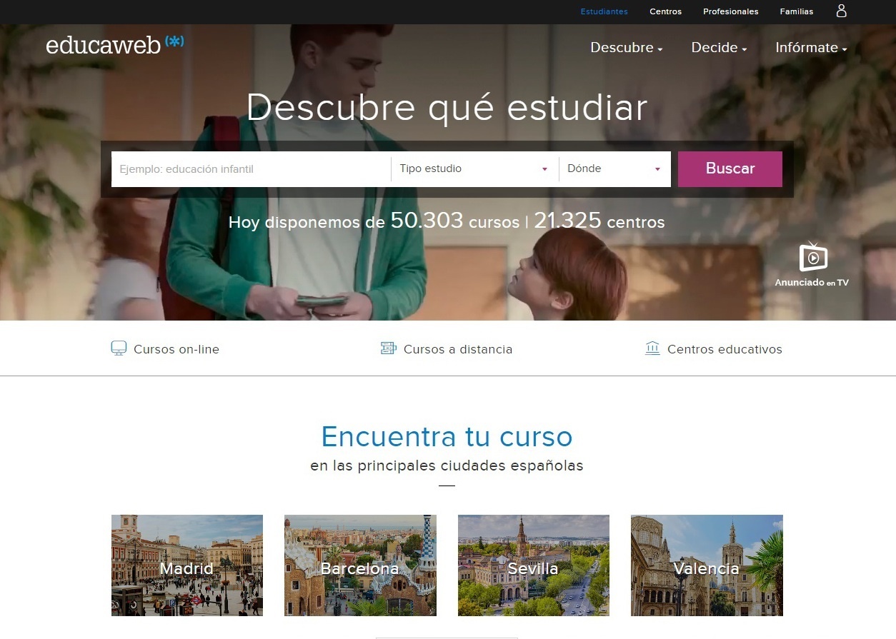 El portal Educaweb ha dissenyat una eina de recerca per ajudar a trobar cursos de formació contínua a partir del currículum de l'usuari, amb més de 50.000 cursos i 20.000 centres de tot Espanya.