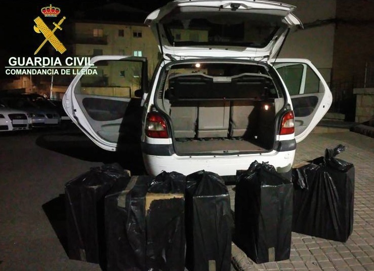 Agents de la Guàrdia Civil van intervenir aquest dilluns 3.000 paquets de tabac ros de contraban, valorat en 13.770 euros, en un cotxe que circulava per la carretera N-145, a l'alçada del terme municipal de La Seu d'Urgell.