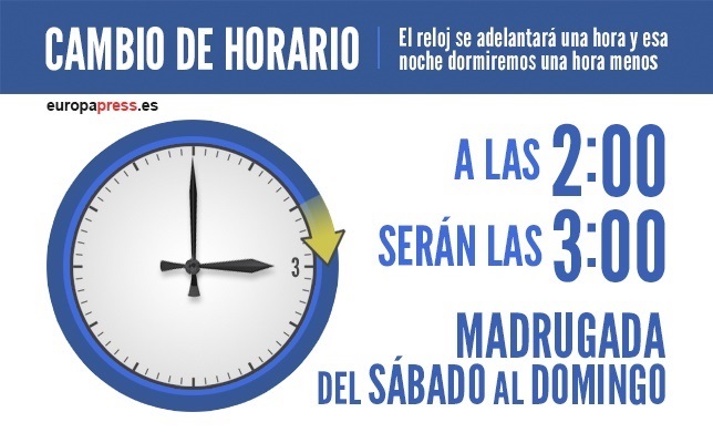 La matinada del proper diumenge, 26 de març, començarà l'horari d'estiu a les 02.00 hores, quan s'avançarà una hora el rellotge i seran les 03.00 hores en tots els Estats membre de la Unió Europea.