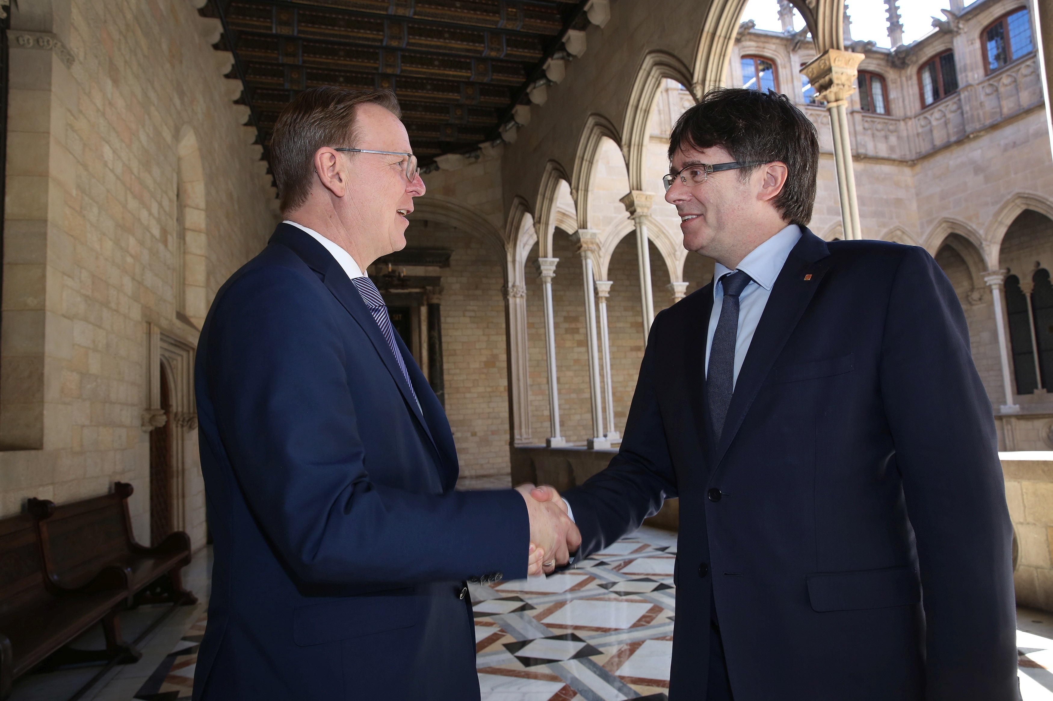 El president de la Generalitat, Carles Puigdemont, s'ha reunit aquest divendres amb el president del govern del land alemany de Turingia, Bodo Ramelow, en el Palau de la Generalitat.