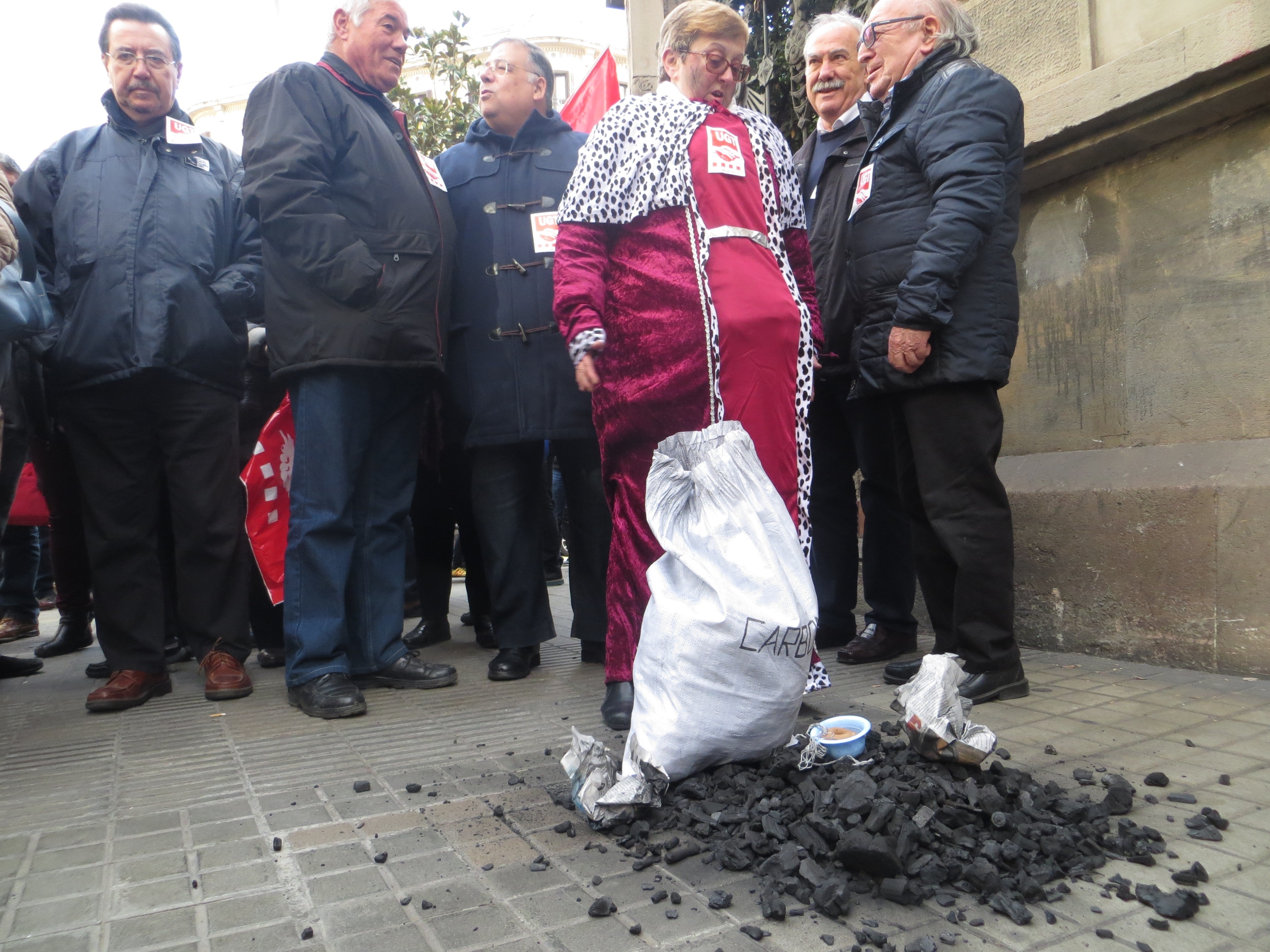 El secretari general de la UGT, Josep Maria Àlvarez ha reclamat aquest dijous en la Delegació del Govern espanyol de Barcelona un augment de les pensions de "més d'un 1,3%" i ha tirat a la porta de la seu del carrer Mallorca una borsa de carbó.