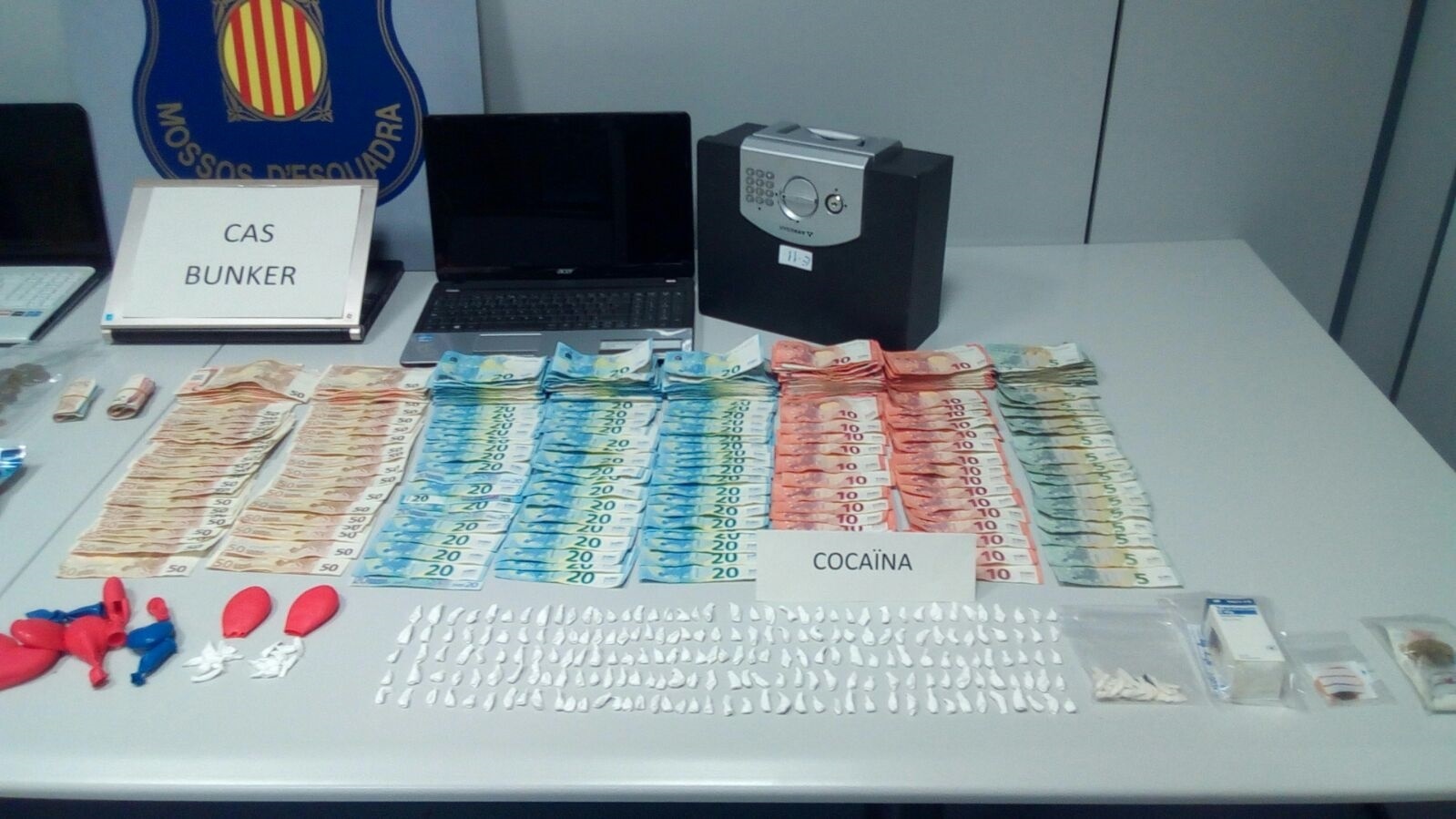Els Mossos d'Esquadra han detingut cinc persones com a presumptes membres d'un grup criminal que traficava amb drogues a un pis del barri de Sant Roc de Badalona (Barcelona), on han trobat cocaïna amagada dins un globus infantil.
