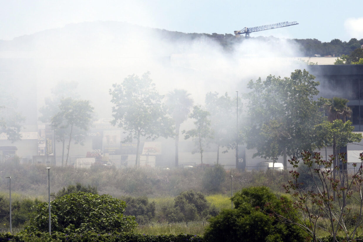 Vilanova i la Geltrú, el nucli de Roquetes de Sant Pere de Ribes, Cubelles, Cunit i Calafell van començar el dia confinats per una fumarada tòxica per l’incendi a una nau de productes per a piscines. Amb el pas de les hores, s’han aixecat les restriccions. Fotografia: EFE/Enrique Fontcuberta.
