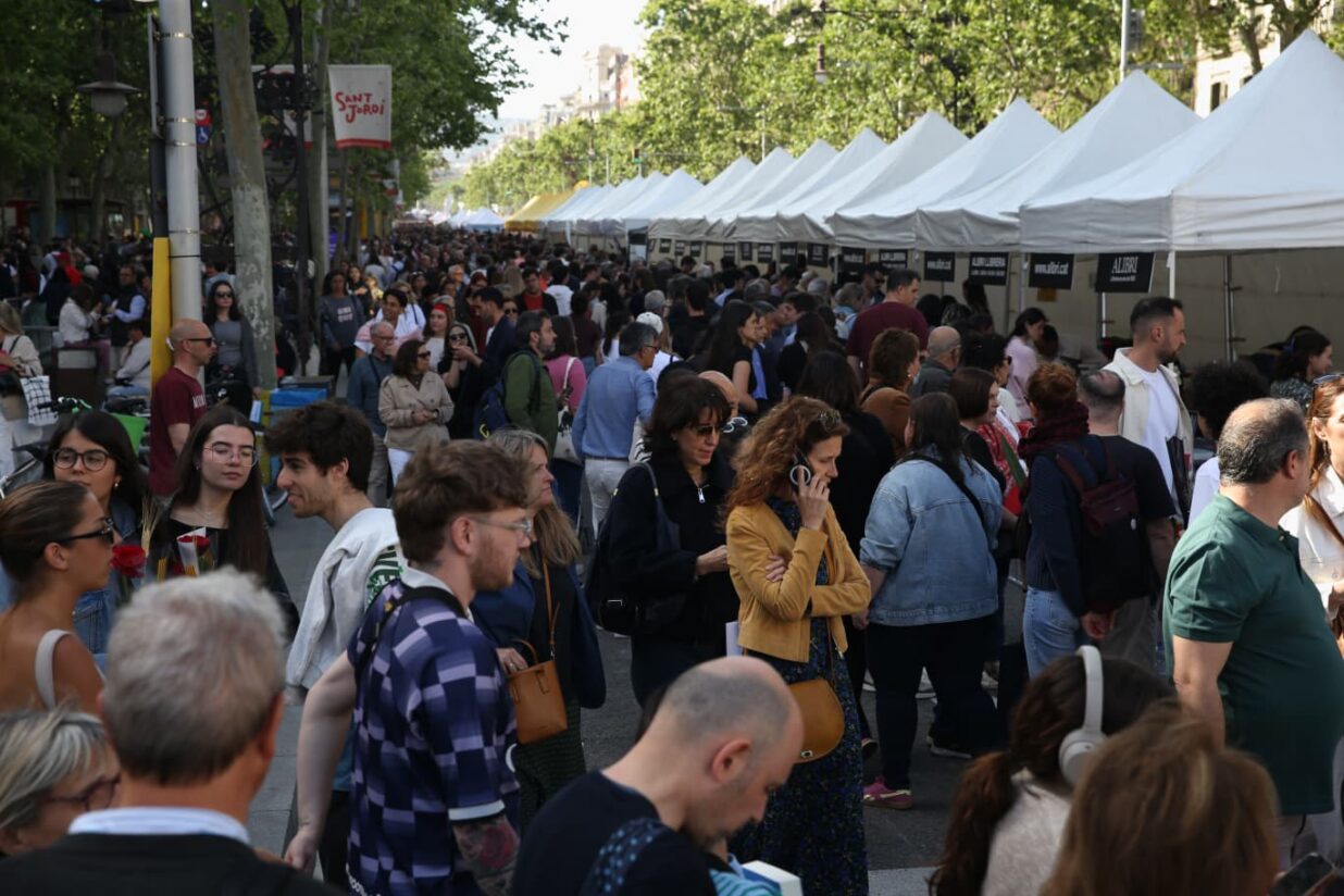 Aglomeracions al centre de Barcelona amb motiu de Sant Jordi. Fotografia: Albert Salamé.