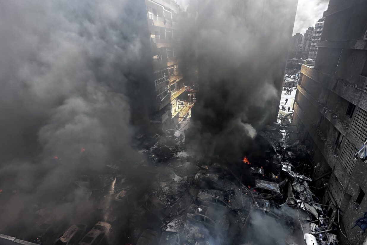 Cotxes incendiats arran d’un atac aeri israelià a Beirut, al Líban. Fotografia: Wael Hamzeh.