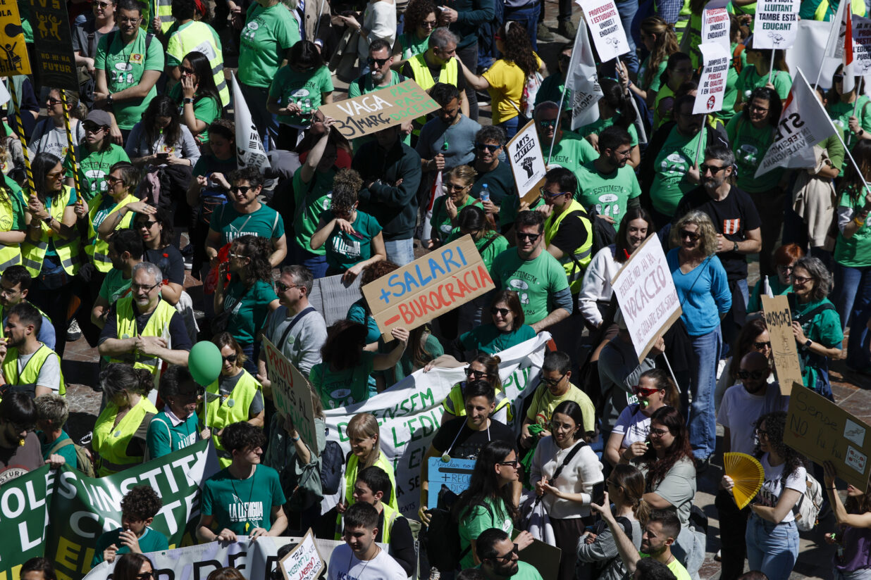 Milers de docents del País Valencià ixen al carrer per reivindicar millores laborals i l’escola pública en català. Fotografia: Biel Aliño.