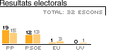 22.43 A la Comunitat Valenciana, amb el 61,17 escrutat, el PP aconsegueix 19 escons, el PSOE 12, EU 1 i UV cap