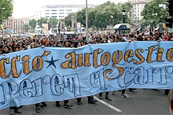 Un fort dispositiu policial ha acompanyat la manifestació a favor de l’okupació convocada a la ciutat de Barcelona. Aquesta concentració clou la Quinzena per l’okupació de l’Assemblea d’Okupes de Barcelona. La policia ha fet algunes càrregues i ha retingut per identificar membres del col·lectiu okupa que es desplaçaven en bicicleta des d’altres punts de la ciutat. La marxa ha arribat fins al Pla de Palau on s’ha disolt definitivament.Durant l’estira i arronsa entre els convocants i la policia, al començament de la concentració, un agent dels Mossos d’Esquadra ha rebut un cop de puny que li ha trencat el nas. No hi hagut cap detingut. En tot moment, els manifestants han caminat amb un cordó de seguretat a banda i banda del recorregut.