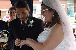 Aquest divendres ha estat de celebració a lEscola Taller Horitzó de Pineda de Mar pel casament de dos dels seus alumnes, en Sergio i la Mari. La parella s’hi va conèixer i allà va néixer l’amor. Fa tres anys que surten junts. «Quan li vaig preguntar si es volia casar amb mi es va quedar amb la boca oberta», recorda en Sergi, de 32 anys. La núvia, de 20 anys, era una de les persones més emocionades. L’alcalde de Pineda de Mar, Xavier Amor, va ser l’encarregat d’oficiar la cerimònia, en què hi havia 200 convidats (la majoria eren membres del taller) i una orquestra integrada per malalts mentals d’un centre de Palafolls.A partir d’ara, els nuvis viuran en un pis de Pineda, amb la mare d’ell, i continuaran l’activitat al centre. Al casament també hi va ser present un representant de la Generalitat, Joan Lluís Gil, que va defensar la importància del casament «com un acte de normalització d’aquest col·lectiu».