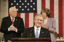 Quan queda una setmana per a la cerimònia de traspàs de poder a la Casa Blanca, els mitjans ja fa dies que dediquen reportatges i articles repassant el llegat polític que deixa el president sortint, George W. Bush. De moment, l’anàlisi més insòlita que hem trobat correspon a la BBC, que s’ha fixat en les paraules més pronunciades per Bush en els vuit discursos sobre l’estat de la nació que ha adreçat al Congrés (de 2001 a 2008).Ajudant-se de l’eina Wordle, la BBC ha plasmat en forma de núvol de mots clau les paraules més dites pel president al principal discurs de l’any, en què repassa els esdeveniments i l’acció de govern i planteja l’agenda de futur. Per elaborar el núvol de mots s’han transcrit tots vuit discursos i s’ha atorgat a cada paraula una mida segons la seva freqüència. Deixant de banda mots comuns com ‘in’, ‘on’, ‘of’, ‘many’ i ‘also’, al capdamunt de la llista se situen ‘America’, ‘people’ i ‘must’, al costat de ‘world’, ‘nation’ i ‘freedom’. La BBC va una mica més enllà i també ha analitzat, en gràfics, l’evolució d’alguns conceptes (terrorisme, economia, societat…) durant els vuit anys de presidència Bush.