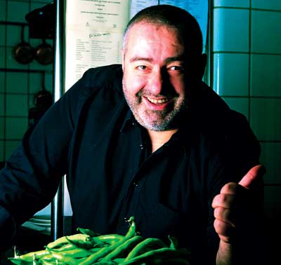 Santi Santamaria era autodidacte. Va obrir el Racó de Can Fabes a Sant Celoni, a la falda del Montseny, el 1981. Era un gran defensor de la qualitat del producte, del producte de proximitat i ecològic, i un expert en bolets. La seva cuina es basava en la tradició, en el producte de qualitat i de proximitat, i la reinterpretava en un estil d’avantguarda.