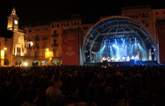 Los Delincuentes y Tomasito han acostat aquest dissabte tota la rumba que han portat directament des de Jerez de la Frontera fins a la Plaça Major de Vic. El públic s’ha afegit ràpidament al so dels andalusos amb les seves guitarres, un caixó, els palmells de les mans i un baix elèctric. La formació ha desgranat al Mercat els títols del seu últim treball “Los hombres de las praderas y sus bordones calientes”, però també han tocat temes més antics i molt ballables com “La Primavera Trompetera”.