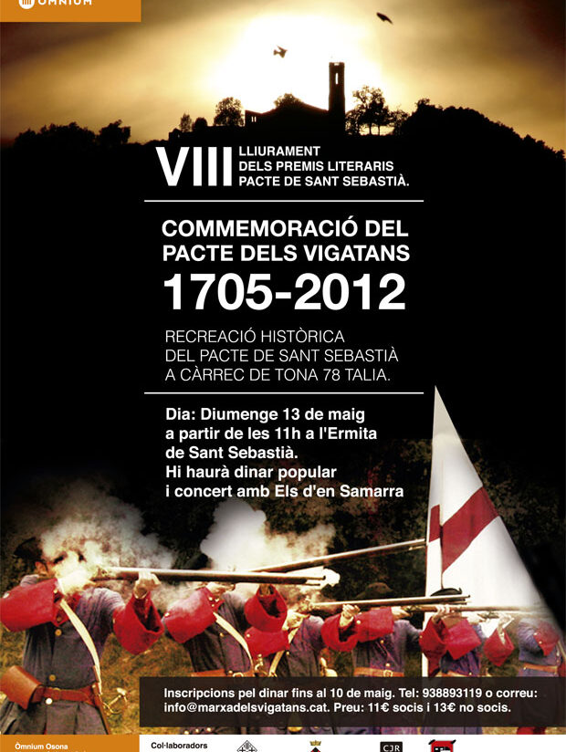 El proper diumenge 13 de maig, Òmnium Cultural d’Osona, el Consell de Joves de Riuprimer i els ajuntaments de Santa Eulàlia de Riuprimer i de Vic organitzen la commemoració del Pacte dels Vigatans de 1705 a l’ermita de Sant Sebastià. Els actes tenen l’objectiu de recordar els fets històrics succeïts el 17 de maig de 1705, quan un grup de prohoms vigatans es van reunir secretament a l’ermita de Sant Sebastià per signar el Pacte dels Vigatans que propiciaria el posterior Pacte de Gènova i l’entrada dels catalans a la Guerra de Successió al bàndol austriacista.
