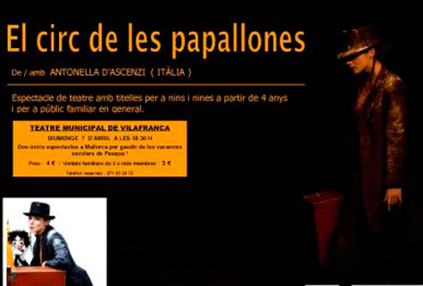 L’obra ‘El Circ de les Papallones’ s’estrena avui al Teatre Municipal de Vilafranca de Bonany. Aquest espectacle de titelles per a tots els públics fa dues úniques funcions a Mallorca. ‘El circ de les Papallones’ és una extraordinària barreja de música fantasia i imaginació que transporta els més petits a un món totalment nou.