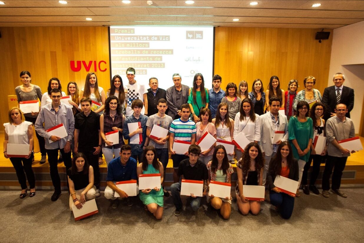 Dimarts, 25 de juny, es van donar els guardons de la 15a edició dels “Premis Universitat de Vic als millors treballs de recerca d’estudiants de Batxillerat 2013”. Es van premiar 37 treballs de 36 centres diferents. El total de treballs presentats foren 270, procedents de 150 centres de tot Catalunya, Andorra i les Illes Balears.