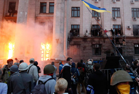 Trenta-vuit manifestants, pel cap baix, van morir-se ahir a Odessa en un incendi causat per les topades entre milícies pro-russes i partidaris del govern ucraïnès, que es manifestaven a la mateixa hora en marxes de signe contrari. El foc es va declarar a la seu dels sindicats, on diversos manifestants s’havien refugiat per escapar precisament de les topades. Trenta de les víctimes van morir-se intoxicades per l’òxid de carboni, mentre que les altres vuit van perdre la vida mirant de fugir saltant de les finestres de l’edifici. Encara es desconeixen les causes de l’incendi, però algunes fonts apunten que podria haver estat provocat per un sector dels manifestants