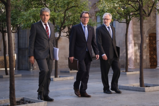 El comissionat per a la Transició Nacional, Carles Viver Pi-Sunyer, participa per primera vegada en la reunió del consell executiu després que fos nomenat ara fa uns dos mesos. Viver Pi-Sunyer ha travessat el Pati dels Tarongers per dirigir-se a la reunió acompanyat pel mateix president de la Generalitat, Artur Mas, i pel conseller de la Presidència, Francesc Homs.