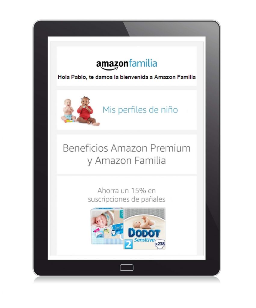 Amazon.es ha llançat aquest dijous ‘Amazon Família’, un nou programa que permet als pares i mares subscrits al servei Premium comprar bolquers amb un descompte del 15% i rebre’ls a casa de forma automàtica amb la freqüència que ells triïn i sense despeses d’enviament.