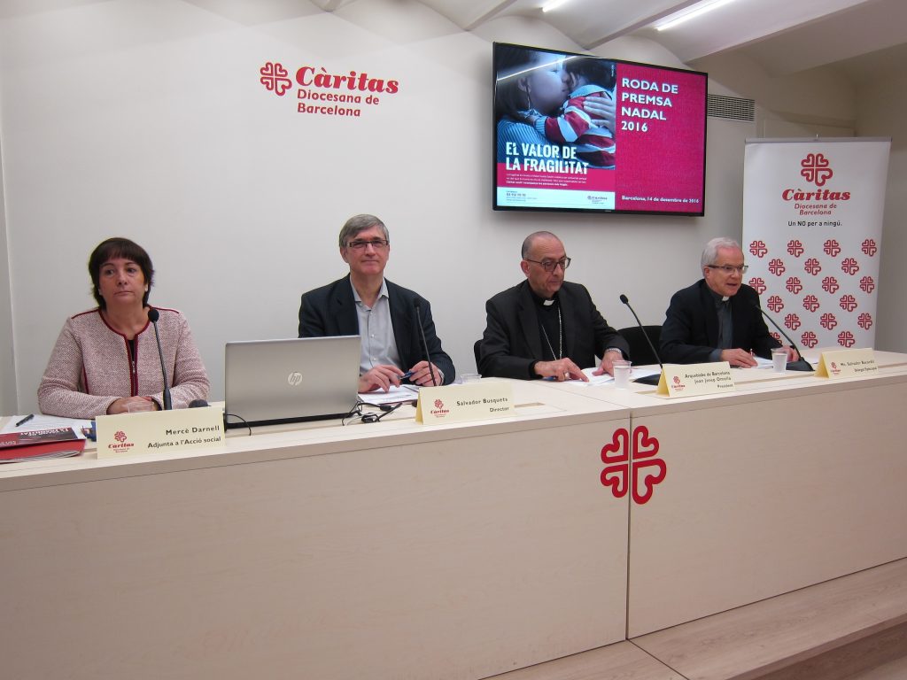“El Nadal és l’època de mirar aquesta fragilitat i és un moment de crida a la solidaritat”, tant des de les administracions com des de la societat i l’Església, davant el fet que els pobres cada cop són més pobres, i ha agraït a les famílies que col·laboren amb l’entitat, en el que ha coincidit en la roda el delegat episcopal de Càritas de Barcelona, Salvador Bacardit.