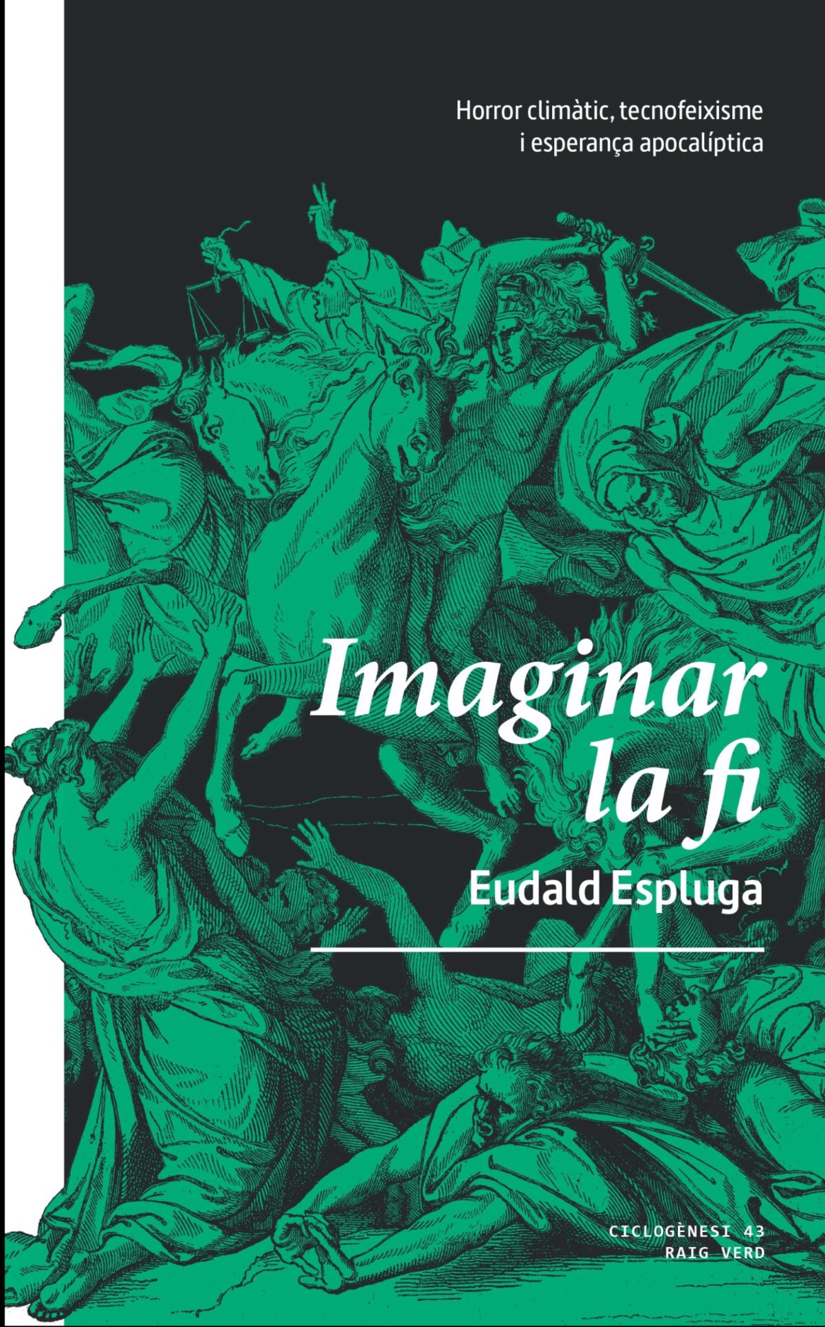 Aquesta setmana entrant arribarà a les llibreries l’assaig d’Eudald Espluga Imaginar la fi, que publica l’editorial Raig Verd. El filòsof exposa que vivim envoltats de relats sobre el col·lapse: crisi climàtica, catàstrofes tecnològiques, guerres globals, búnquers de luxe i fantasies d’escapisme reservades a uns pocs. Imaginar la fi analitza per què la fi del món s’ha convertit en el nostre horitzó cultural i polític, i com aquesta imaginació apocalíptica sovint actua com un mecanisme de paràlisi. Per mitjà de la teoria crítica, la filosofia i l’anàlisi de la cultura contemporània, el llibre qüestiona el fals dilema entre imaginar la fi del món o imaginar la fi del capitalisme, i proposa de pensar el final no com un col·lapse inevitable, sinó com un camp de disputa política, simbòlica i col·lectiva en un planeta que ja ha entrat en una fase de transformació irreversible.