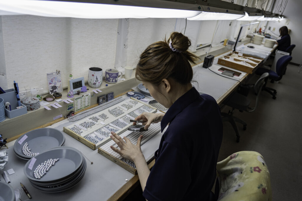 Badia d’Ago, Japó. Durant generacions, els collarets de perles blanques, lluïts per icones de la moda, com ara Audrey Hepburn i Jacqueline Kennedy, han estat el símbol per excel·lència de l’elegància discreta.