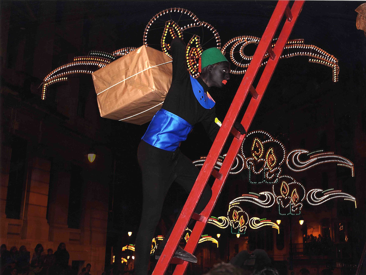 La rebuda dels Reis de l’Orient a Igualada (Anoia) és una de les cavalcades més antigues del país: es manté viva d’ençà de l’any 1895, i ja fa anys que malda per ser declarada patrimoni cultural immaterial de la UNESCO. Un dels trets especials del seguici d’Igualada és que els patges s’enfilen als primers balcons i finestres de les cases per repartir obsequis a les famílies, com a la d’Alcoi. Ses Majestats tenen un gran nombre d’ajudants, però el més característic de la ciutat és el patge Faruk. És l’emissari reial que cada 28 de desembre arriba a Igualada acompanyat d’una munió de patges i llibres blancs –on apunta els infants que han fet bondat– i un de negre –per a tots aquells que han fet malifetes. El patge Faruk també és l’encarregat de recollir les cartes el primer de gener.