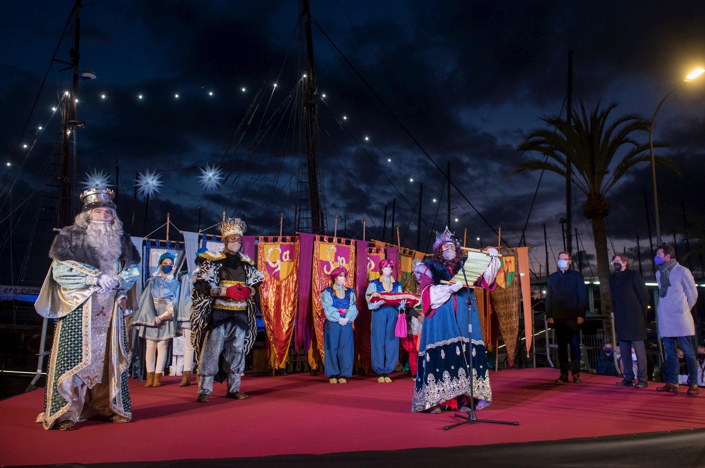 A la plaça de l’Ajuntament, es recrearà l’escena del naixement de Jesús, i Ses Majestats li presentaran els regals. Més tard, eixiran al balcó del consistori per fer-hi el discurs. Tot seguit, aniran al Saló de Cristall, on els nens els podran demanar els darrers desigs als Reis de l’Orient abans d’anar a dormir.
