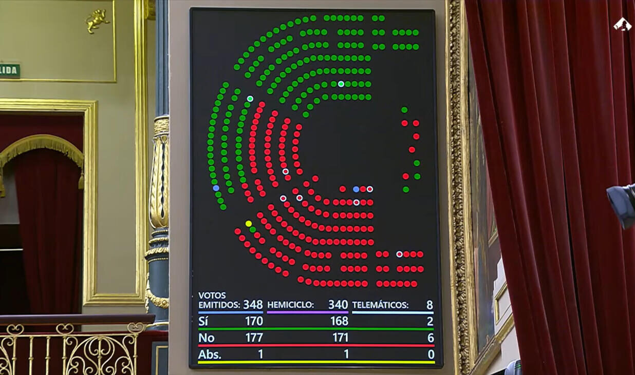 El ple del congrés espanyol ha rebutjat per 177 vots en contra (PSOE, Sumar, ERC, Junts, PNB, Bildu, Podem, BNG i Compromís) i 170 a favor (PP, Vox i UPN) i una abstenció la presa en consideració d’una proposició de llei de Vox per prohibir el burca i el nicab en espais públics.