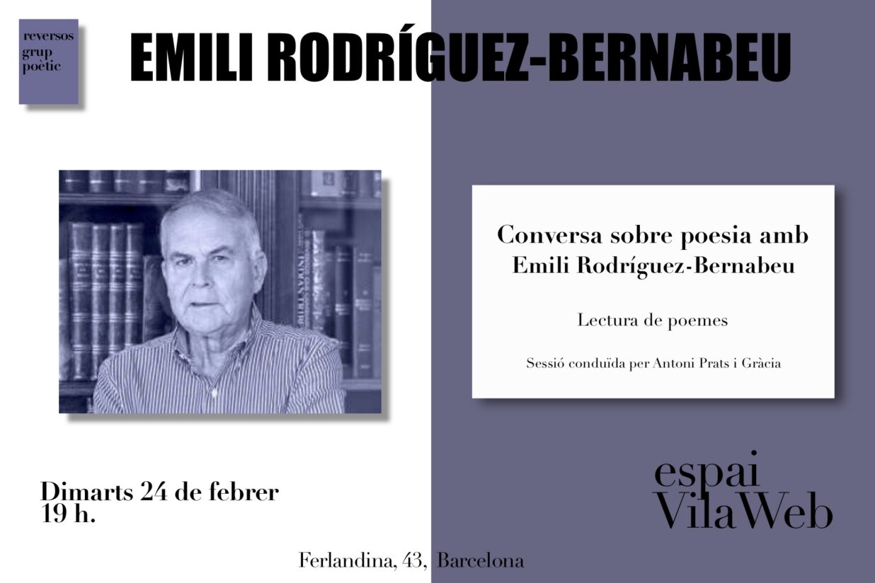 El grup de poesia Reversos us convida a la conversa amb el poeta Emili Rodríguez-Bernabeu (Alacant, 1940), que es farà a l’Espai VilaWeb demà dimarts, 24 de febrer, a les set del vespre.