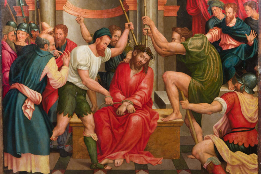 La tercera adquisició és ‘Coronació d’espines’, una pintura atribuïda a Pere Nunyes i datada cap al 1545. L’obra, de grans dimensions i fins ara inèdita, representa l’episodi bíblic amb una iconografia pròpia del manierisme, és a dir, Crist assegut i envoltat de botxins, mentre Ponç Pilat observa l’escena des d’un pla elevat. L’ambientació interior, amb arquitectura clàssica, i una paleta de tonalitats suaus, apunten a l’etapa final de l’activitat del pintor.