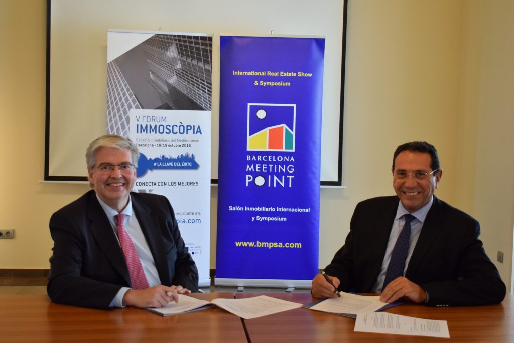 Segons l’acord, Barcelona Meeting Point es converteix en col·laborador del V Forum Immoscopia –impulsat pels API–, que es farà els dies 18 i 19 d’octubre a l’Hotel Catalonia Barcelona Plaça, mentre que el saló immobiliari, amb el patrocini d’API, tindrà lloc del 19 al 23 d’octubre al recinte Montjuïc de Fira de Barcelona.