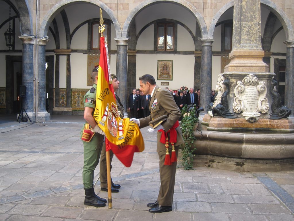 A l’acte de comiat, el tinent general s’ha acomiadat de la bandera espanyola, en aquesta ocasió de la Brigada Paracaigudista en la qual va servir, i ha fet una ofrena junt amb l’exdelegada del Govern espanyol a Catalunya Llanos de Luna als caiguts en servei.