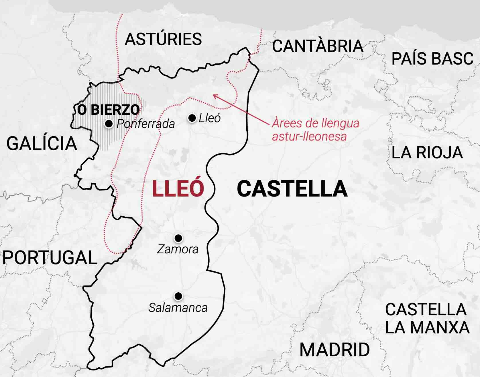 Però la reivindicació lleonesa no és pas solament una qüestió de greuges polítics o econòmics. S’assenta també sobre una base històrica, cultural i lingüística sòlida que la diferencia nítidament de Castella. L’astur-lleonès, la llengua pròpia també d’Astúries, encara ressona a les valls i pobles de la muntanya. La UNESCO el cataloga com a idioma en perill d’extinció i en recomana la preservació, però l’article 5 de l’Estatut d’Autonomia de Castella i Lleó, que promet una protecció específica per al lleonès, continua passades les dècades essent una promesa buida, mai complerta amb convicció per una Junta més preocupada pels interessos de Valladolid que no pas per la diversitat del territori que governa.