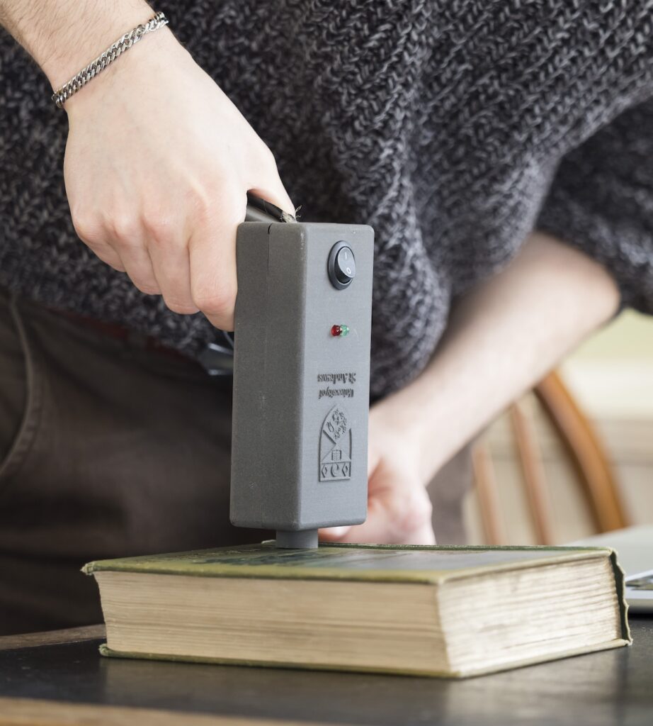 A partir d’aquí, s’ha dissenyat un prototip que fa servir una llum verda i una d’infraroja, que indiquen respectivament, la presència d’arsènic i de pigments en els volums vuitcentistes, i que s’ofereix a totes les universitats, biblioteques, llibreries de vell i bibliòfils que pateixin per la presència d’aquest compost d’arsènic i coure a les seves col·leccions. Per usar aquest senzill instrument, a més, no cal ser pas conservador ni especialista, i la informació s’obté a l’instant. Detectar aquests llibres perillosos –que amb la seva desintegració en microscòpiques fibres, augmenta el risc de nocivitat en respirar-les– ha de permetre de poder-los continuar llegint i estudiant amb les degudes precaucions per tal de limitar-ne els riscs, sense haver-los de retirar de les lleixes.
