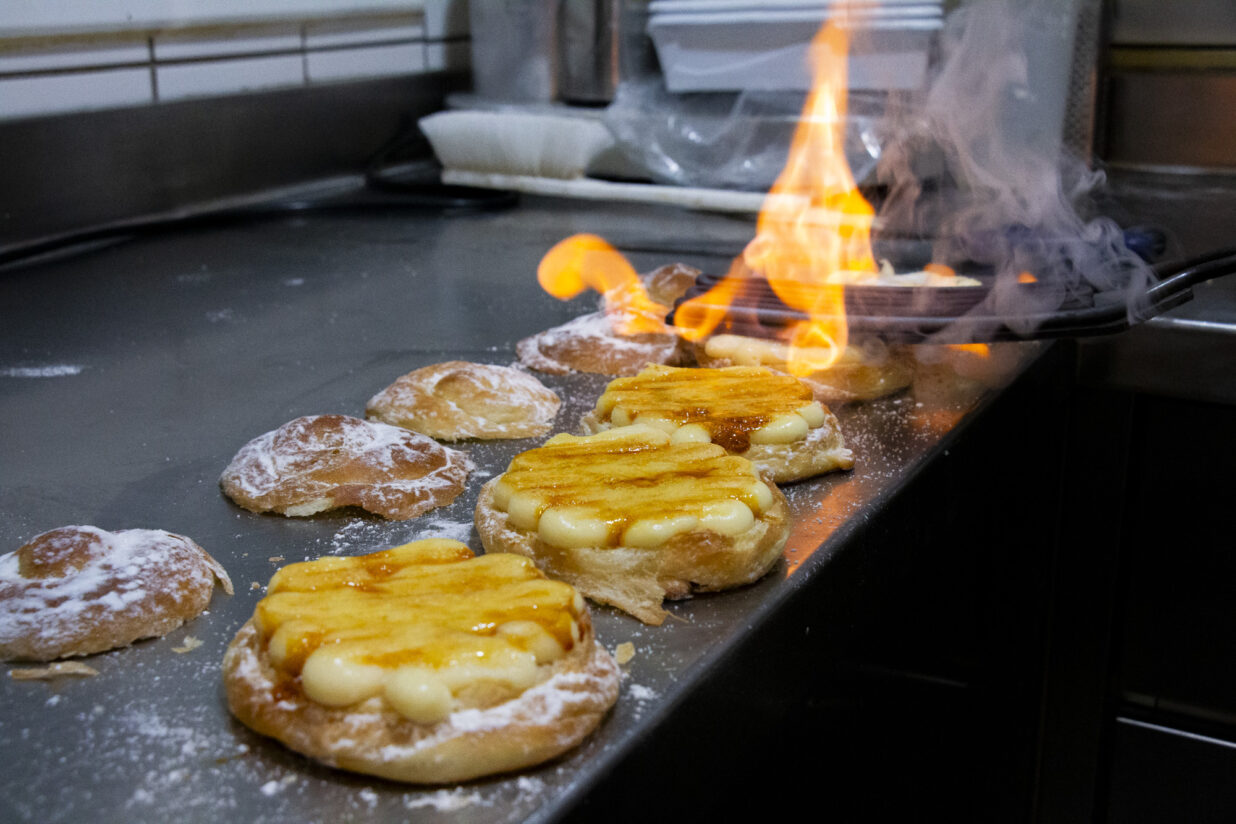 No les fan sempre totes, però es poden encarregar. El cap de setmana, les ensaïmades comparteixen espai amb unes altres especialitats de la casa, com el tortell de nata, que fa celebrar el diumenge cada setmana de l’any, i el peix de nata, fet amb pasta de brioix.