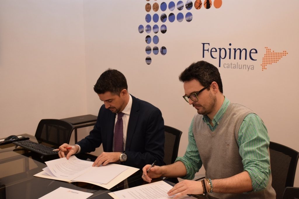 El secretari general de la Federació d’Empresaris de la Petita i la Mitjana Empresa de Catalunya (Fepime), César Sánchez, i un dels socis de la plataforma deducible.es, Sergio Galiano, han signat un acord per facilitar a les pimes el càlcul de les deduccions fiscals procedents de les inversions en recerca i desenvolupament.