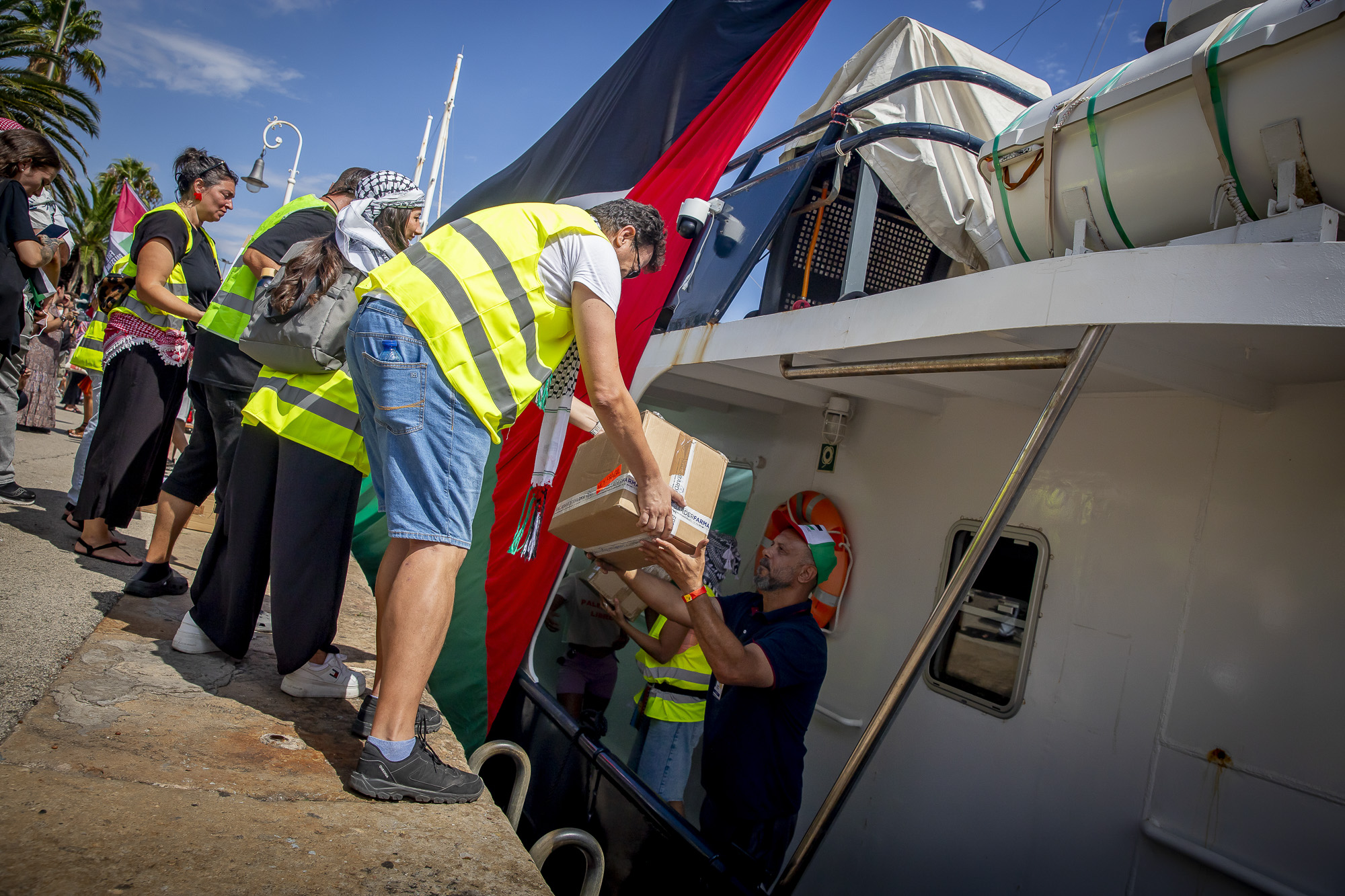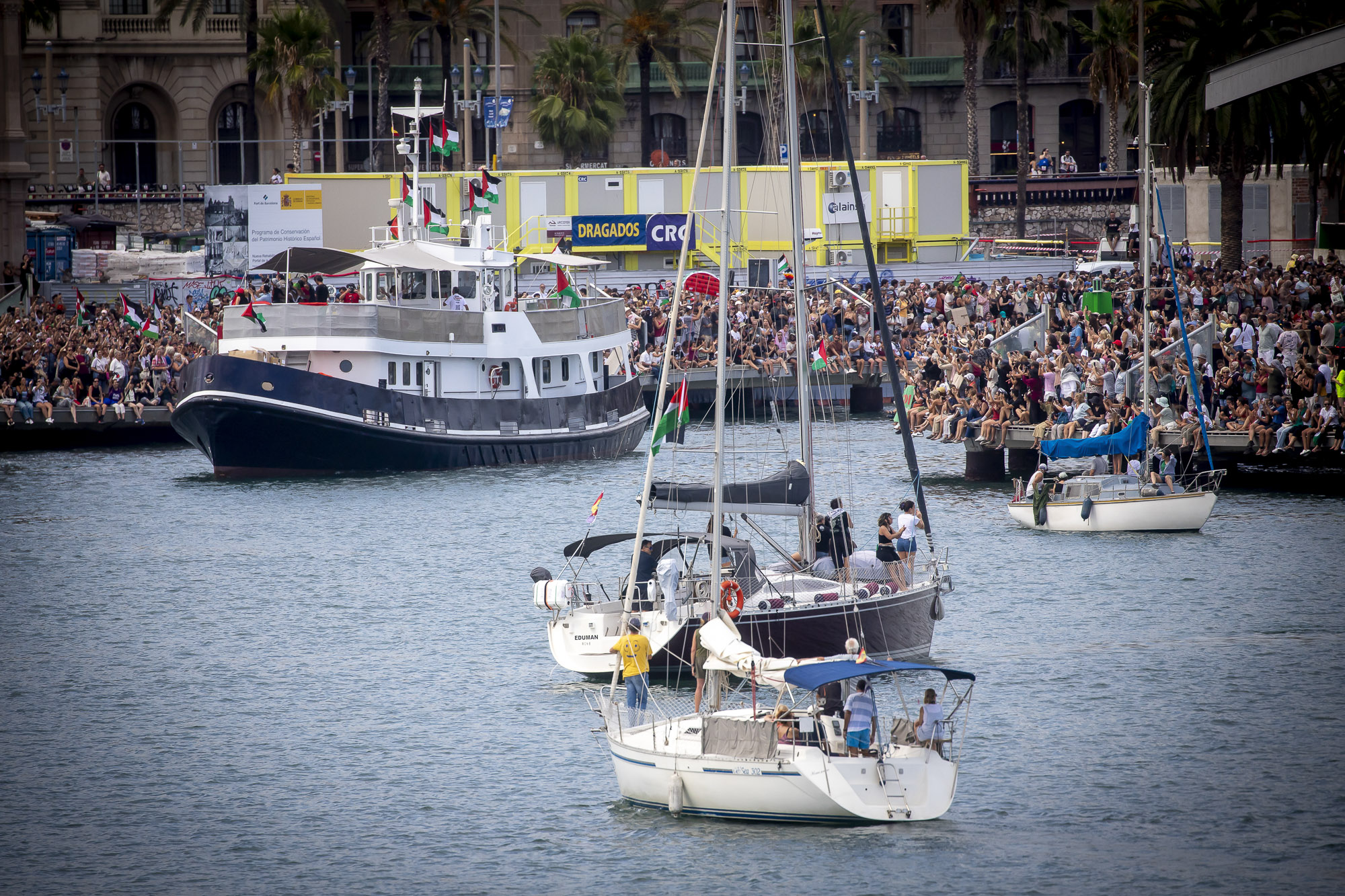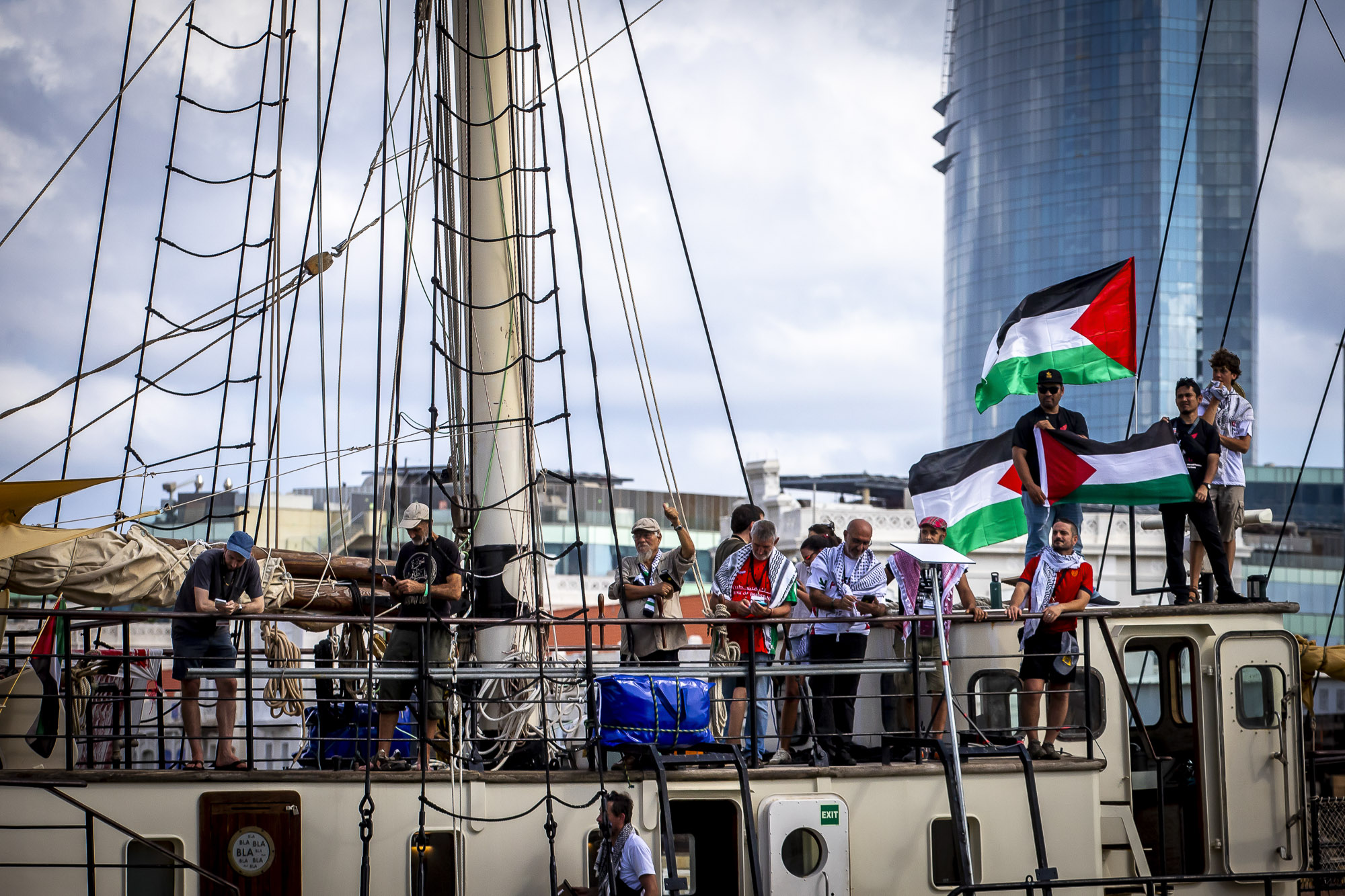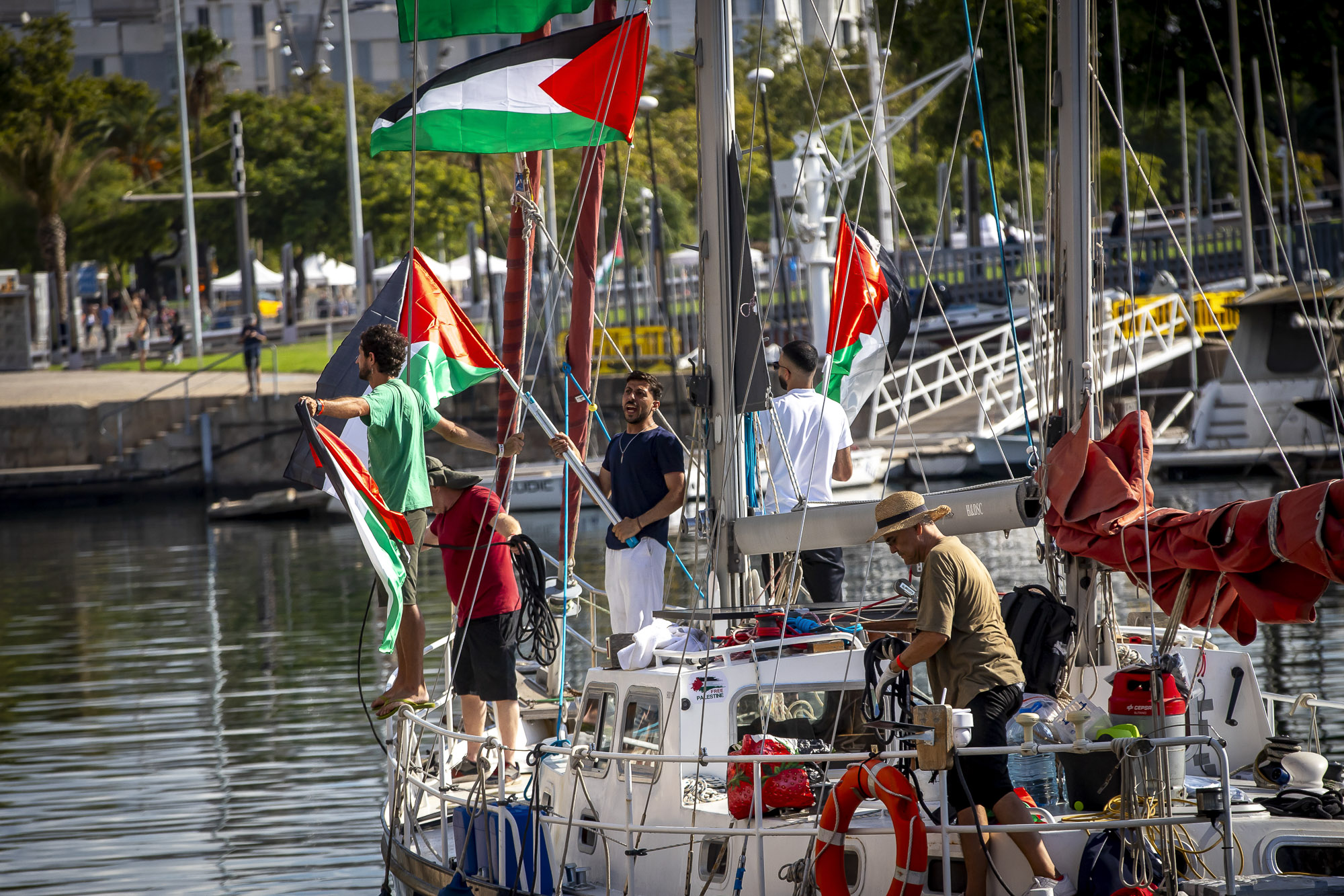 La Global Sumud Flotilla ha salpat avui des del port de Barcelona en la que ja es considera la missió humanitària civil marítima més gran contra el blocatge de Gaza. Centenars de persones s’han aplegat al Moll de la Fusta on, durant el cap de setmana, hi ha hagut concerts, xerrades i tallers per a donar suport a la iniciativa, i han acomiadat la sortida tot cridant “Palestina lliure” i amb banderes palestines al vent. La flotilla està integrada per activistes i representants de més de quaranta països, entre els quals destaquen Greta Thunberg, l’ex-batllesa de Barcelona Ada Colau, l’actor Liam Cunningham, i diputats de la CUP i Compromís, que han remarcat que, enfront de la inacció dels estats, és la societat civil qui ha d’assumir el desafiament de trencar el blocatge i obrir corredors humanitaris.