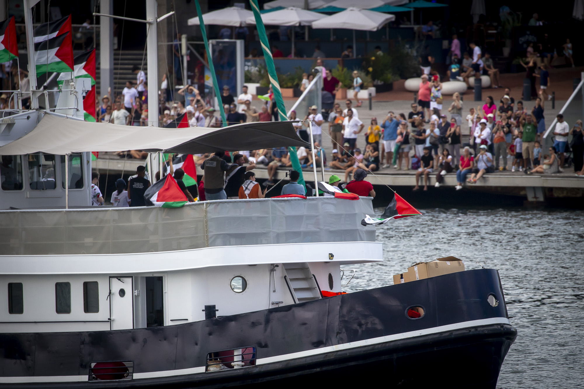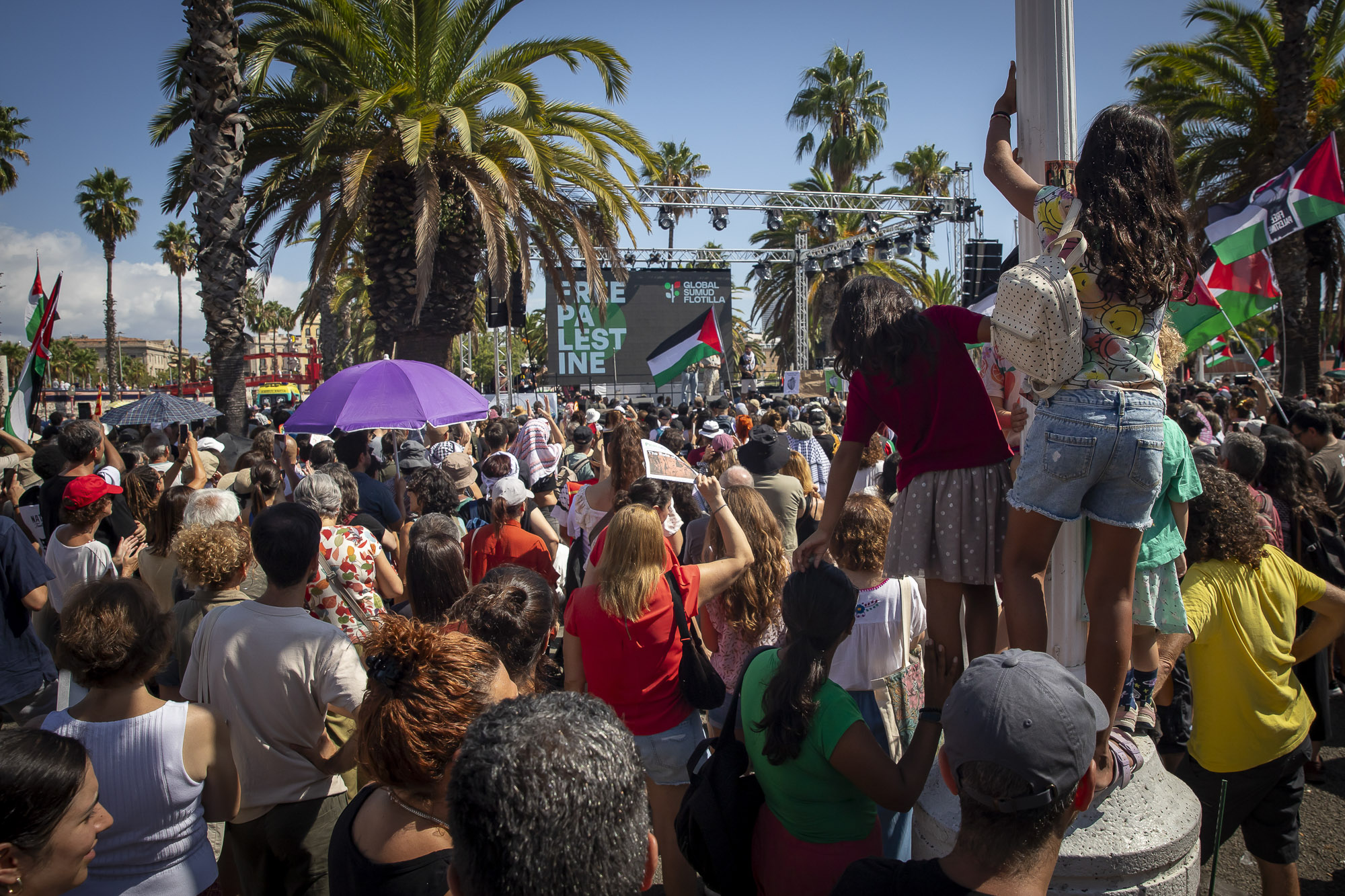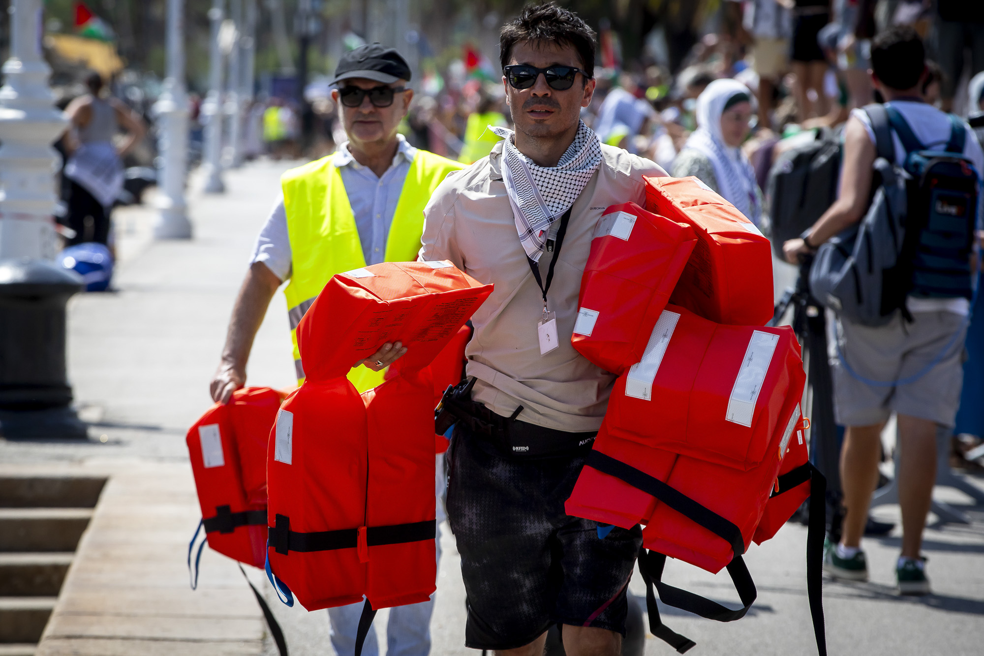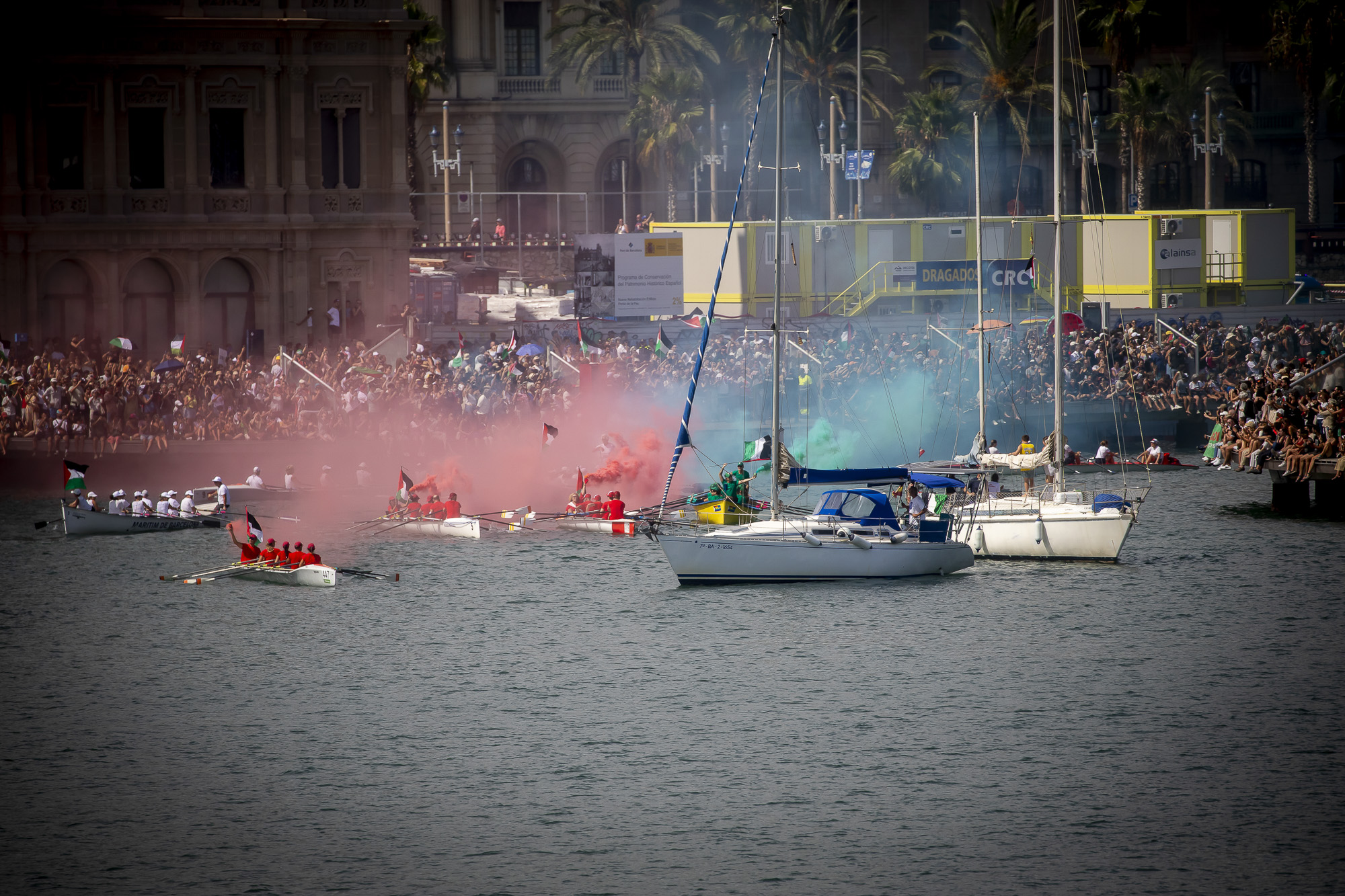 La Global Sumud Flotilla ha salpat avui des del port de Barcelona en la que ja es considera la missió humanitària civil marítima més gran contra el blocatge de Gaza. Centenars de persones s’han aplegat al Moll de la Fusta on, durant el cap de setmana, hi ha hagut concerts, xerrades i tallers per a donar suport a la iniciativa, i han acomiadat la sortida tot cridant “Palestina lliure” i amb banderes palestines al vent. La flotilla està integrada per activistes i representants de més de quaranta països, entre els quals destaquen Greta Thunberg, l’ex-batllesa de Barcelona Ada Colau, l’actor Liam Cunningham, i diputats de la CUP i Compromís, que han remarcat que, enfront de la inacció dels estats, és la societat civil qui ha d’assumir el desafiament de trencar el blocatge i obrir corredors humanitaris.