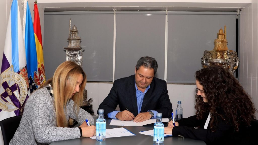 “El Reial Club Deportivo fa un altre cop història en el futbol gallec en convertir-se en el primer club de futbol de la comunitat que fa fitxes professionals a les seves jugadores. Les dues primeres futbolistes a firmar el seu contracte professional són Raquel i Tere, que van rubricar la seva nova relació contractual a la seu del Deportivo amb el president Tino Fernández”, assenyala el comunicat emès pel club.