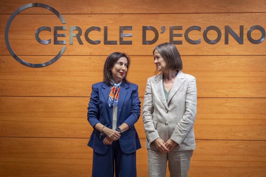 Interessant xerrada, la de Robles, que seia al costat de l’economista Teresa Garcia-Milà, doctora en economia per la Universitat de Minnesota, directora de la Barcelona School of Economics i, d’ençà del juny passat, primera presidenta femenina del Cercle d’Economia en 67 anys d’història. Garcia-Milà –tia, per cert, de Jordi Graupera i Garcia-Milà– ha fet una petita introducció de Robles, i la ministra ha recollit el guant amb uns primers minuts en català. “Barcelona és la meva ciutat”, ha dit. La família de Robles, quan tenia dotze anys, es va traslladar de Castella i Lleó a Barcelona, on la ministra va estudiar a l’institut Maragall i, després, va fer dret per a ser jutgessa. Fou la primera de la seva promoció, i la quarta dona jutgessa a l’estat espanyol, amb primera destinació a Balaguer. A 34 anys, va presidir l’Audiència de Barcelona, la primera dona de tot l’estat espanyol que la presidia. I avui Robles, la socialista Robles, ha dedicat tota la seva capacitat a convèncer l’audiència de les bondats de gastar més en armament “des de posicionaments progressistes, i orgullosa de les forces armades”.