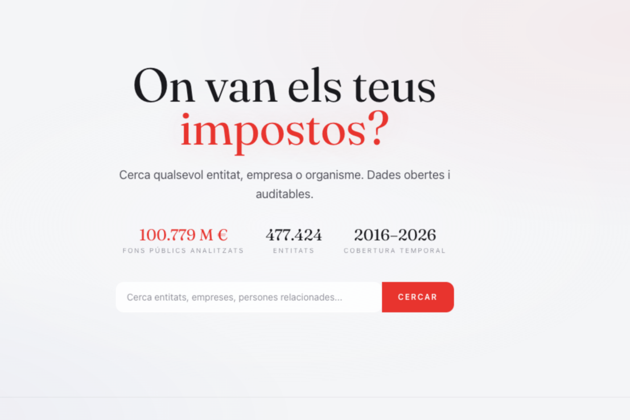 Fa quinze dies, un ciutadà va aprofitar dues grans possibilitats de la intel·ligència artificial generativa –tractar dades a gran escala i muntar plataformes obertes sense necessitat de saber programació– i va publicar el portal Subvencions.cat, presentat com un “observatori independent per a consultar qui rep subvencions i quin organisme les concedeix”. A les xarxes va ser com si hagués caigut un meteorit i de seguida tothom va començar a cercar-hi els grans receptors de diners públics i a compartir-ho: l’activisme subvencionat, les fundacions dels partits, l’Església Catòlica, les grans constructores. La iniciativa només va saltar als mitjans de comunicació (tot i que molt tímidament) quan les dades van deixar de ser accessibles durant algunes hores, sembla que per acció del govern de la Generalitat. Al cap de pocs dies va aparèixer el Menjòmetre, “el cercador de menjadores”, una iniciativa molt més ambiciosa que fa rànquings de fragmentació de contractes o compara les subvencions amb beques o places de residència.